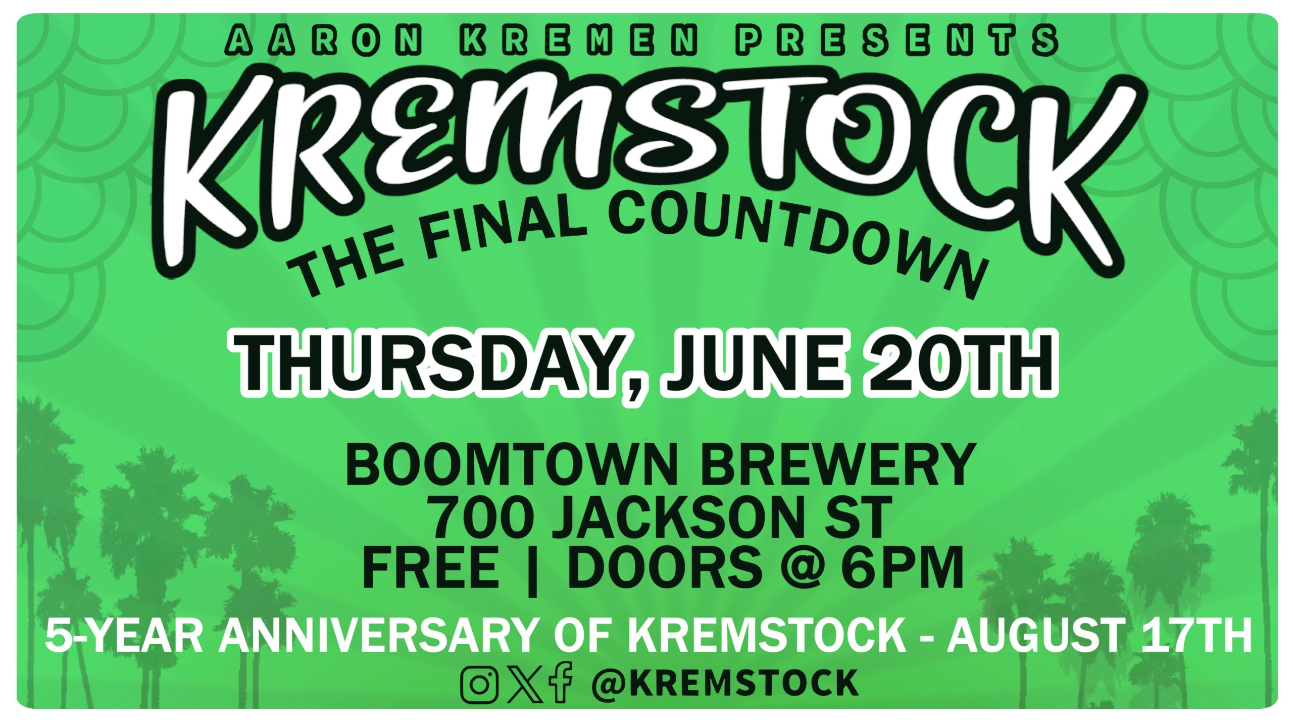 Boomtown Brewery 700 Jackson St, Los Angeles, CA, United StatesKremstock comes to Boomtown for The Final Countdown! Join us Thursday, June 20th at 7pm. Free to attend, this amazing music fest raises funds for 5th year anniversary of an […]